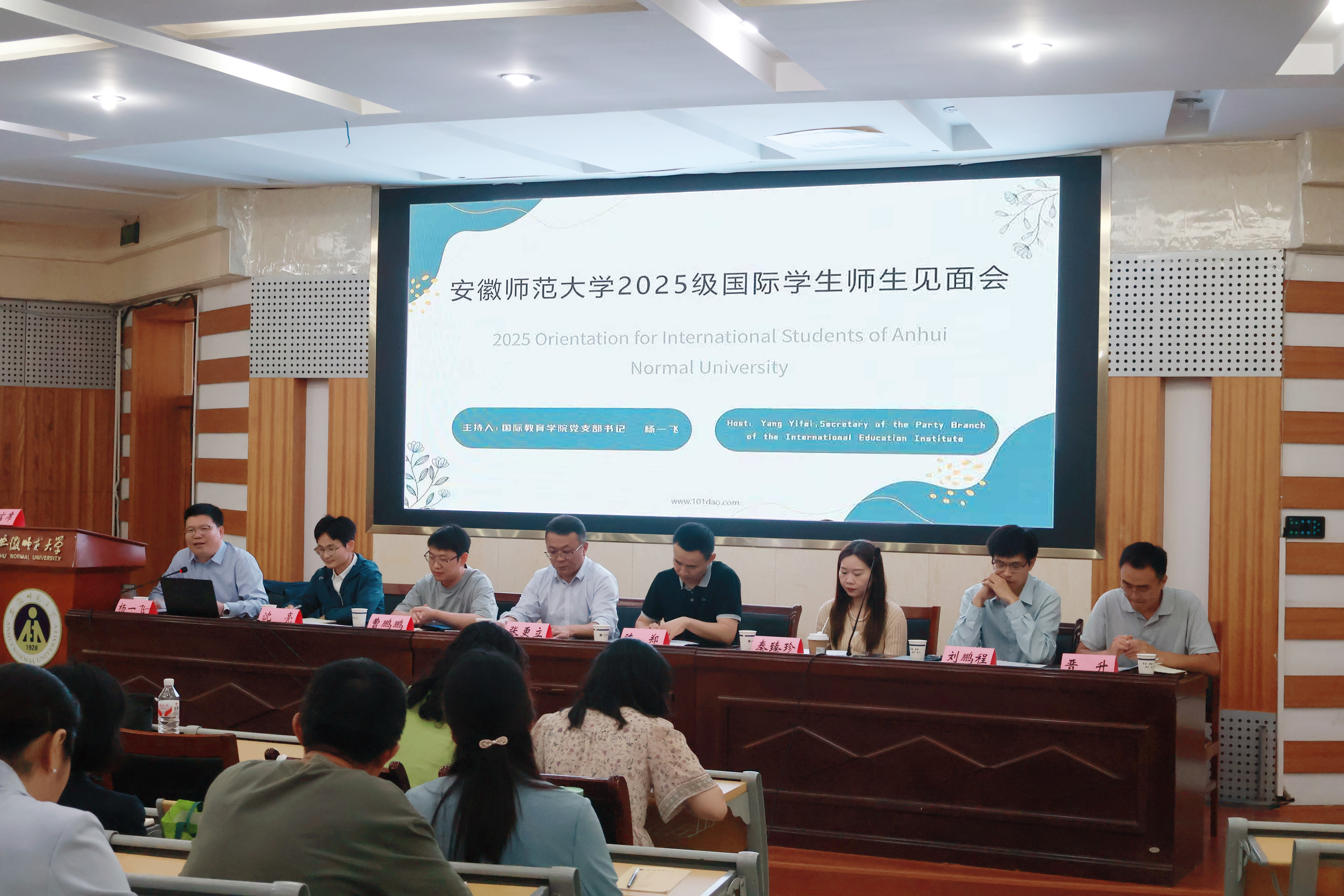 9月24日下午,国际教育学院在花津校区8号楼副2楼报告厅举行2025级国际学生新生见面会。国际教育学院党支部书记杨一飞主持本次会议,新生所在学院领导、教师代表,国际教育学院全体教职工以及全体2025级国际留学生共同参加。