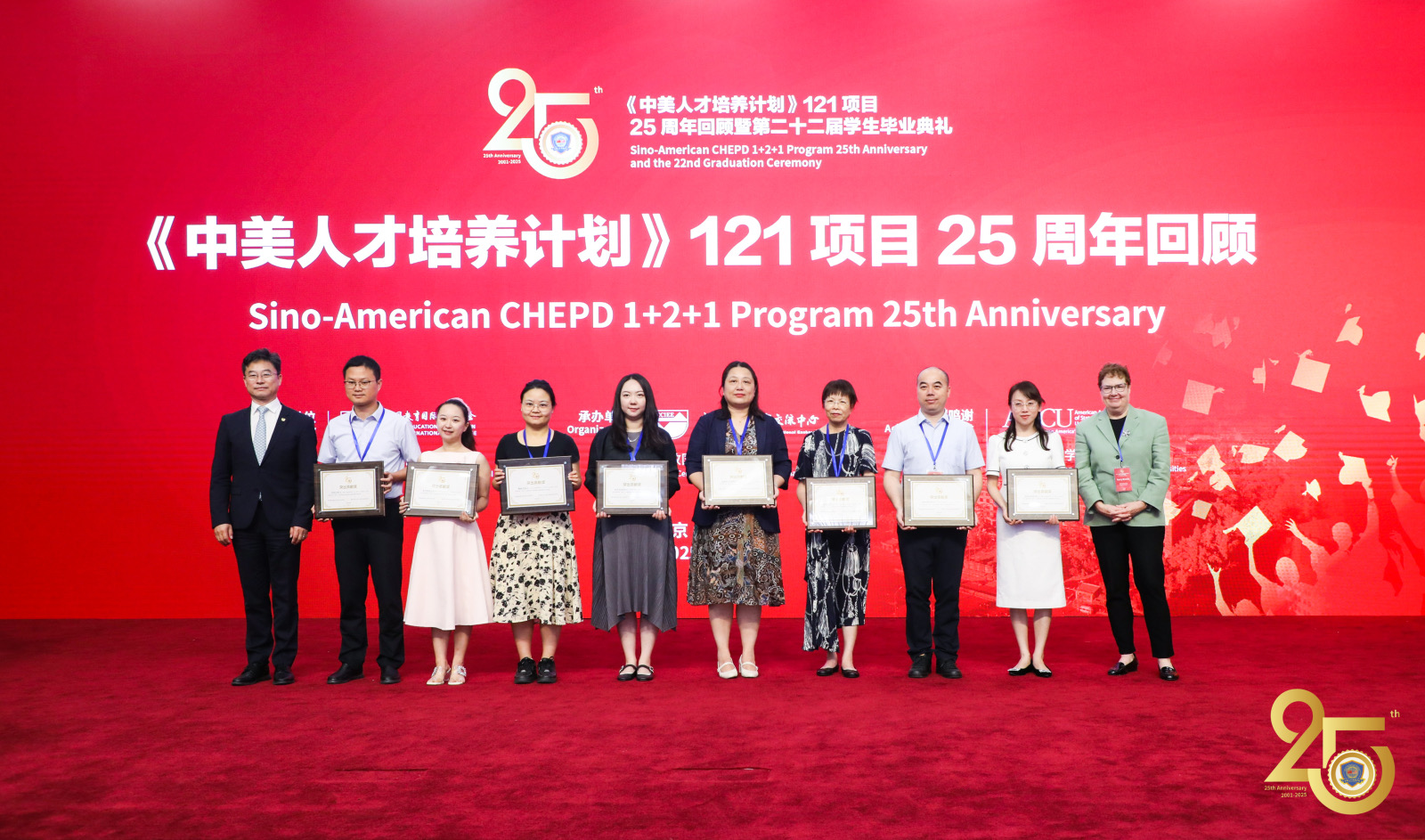 我校国际教育学院副院长杜俊(主持行政工作)全程参与活动,与中美高校代表就深化人才联合培养、拓展国际化教育合作等议题展开交流。在25周年回顾表彰中,我校荣获“突出贡献单位”,杜俊荣获“突出贡献奖”、项目协调员韩笑荣获“优秀工作者”称号。