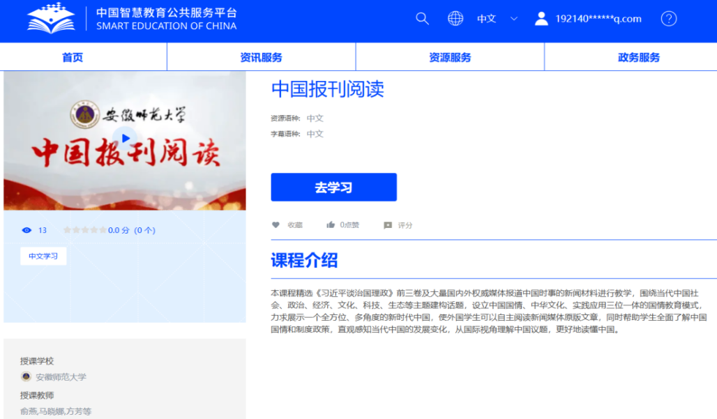 根据国家教育数字化战略行动的统一部署,建强用好国家智慧教育公共服务平台国际版,汇聚优质的课程资源,着力推进数字教育高水平对外开放,教育部科学技术与信息化司会同职成司、高教司、国际司于2025年开展国际版课程资源遴选工作,经安徽省教育厅和国家教育部层层选拔,我校国际教育学院俞燕副教授团队主讲的《中国报刊阅读》课程获推上线国家智慧教育平台国际版。