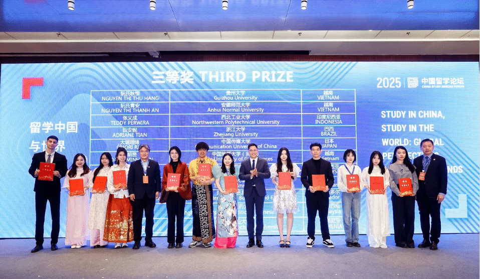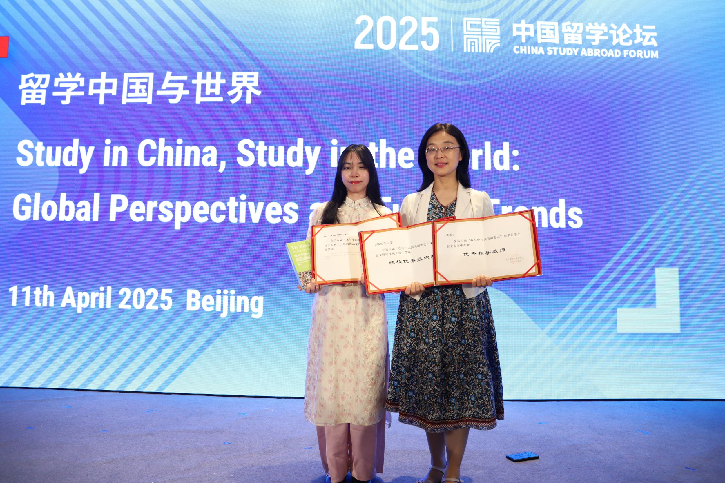 日前,由教育部留学服务中心主办的2025“留学中国与世界”专题研讨在北京国家会议中心成功举办。本次研讨会围绕“留学中国”品牌建设等专题进行了高水平对话,并举行了2024年“我与中国的美丽邂逅”来华留学生征文暨短视频大赛成果展示及颁奖典礼。我校国际教育学院李源老师和留学生阮氏青安作为获奖代表,受邀参与本次活动。