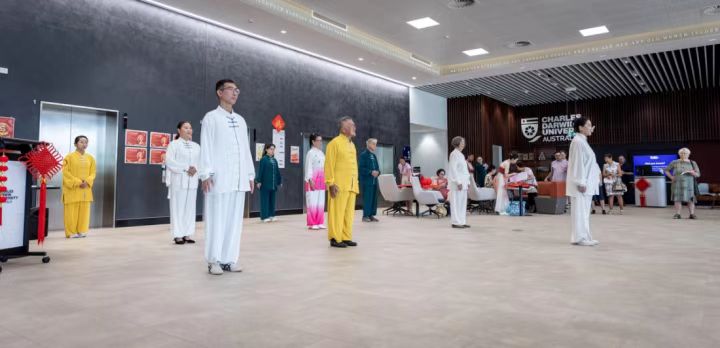 太极功夫表演是当天活动最大亮点之一。孔院老师和太极学生们一起展示了行云流水般的太极八段锦和八法五步,以及刚柔并济的太极扇展示,赢得现场观众的阵阵掌声。紧接着,孔院教师们带来了充满活力的健身操表演,动感的音乐配合整齐划一的动作,展现了教师们昂扬向上的精神风貌。优美的中国传统舞蹈表演更是将中国古典艺术的典雅展现得淋漓尽致,其中澳中友好协会带来的舞蹈以曼妙的舞姿诠释了传统中华文化,让观众们大饱眼福。