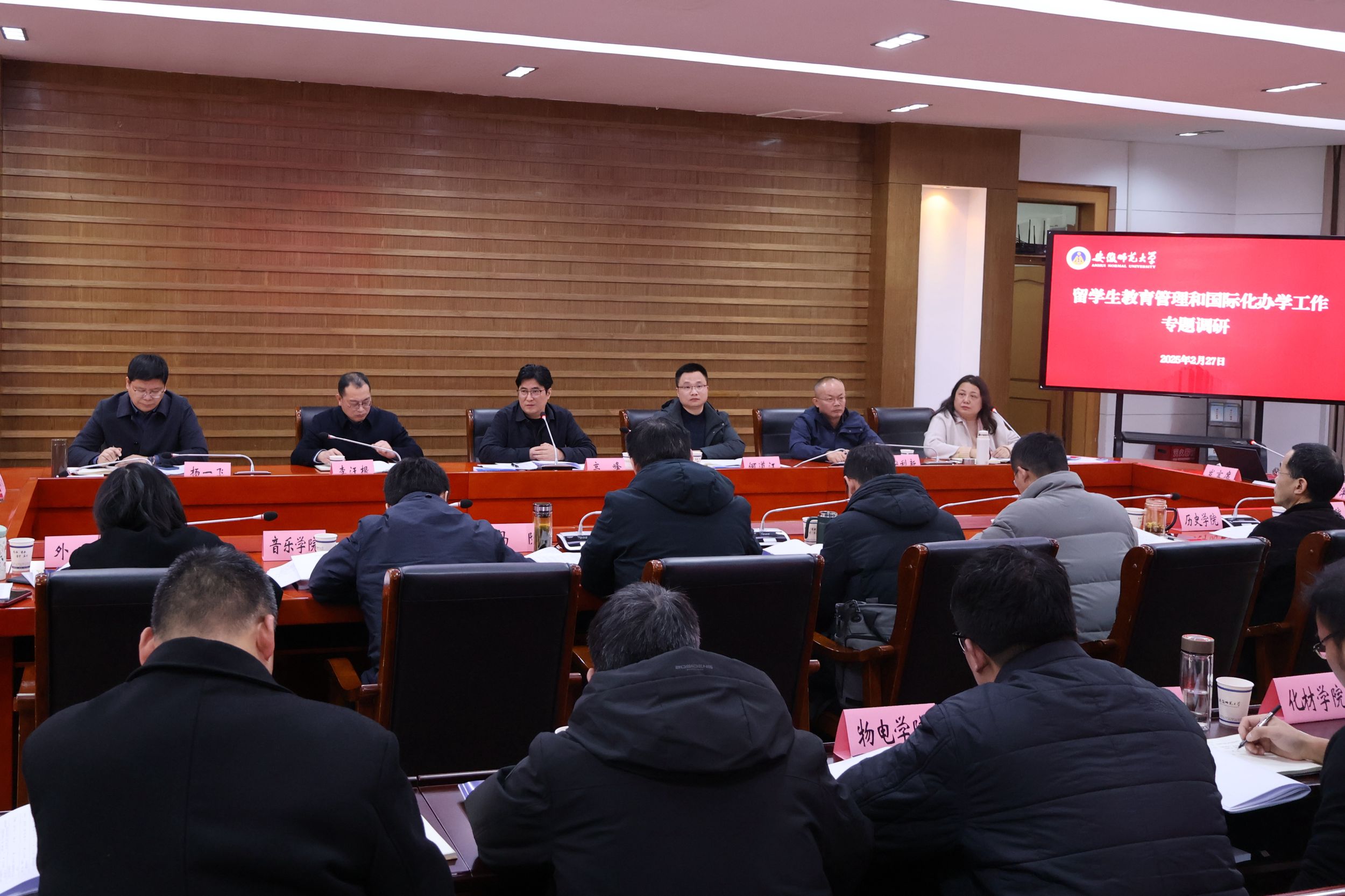2月27日,学校在花津校区会议中心第一会议厅召开留学生教育管理与国际化办学工作专题调研会。校党委常委、副校长高峰主持会议,发展规划处、教务处、研究生院、国际教育学院(国际交流合作处)负责人,各学院分管外事工作负责人和外事秘书参会。