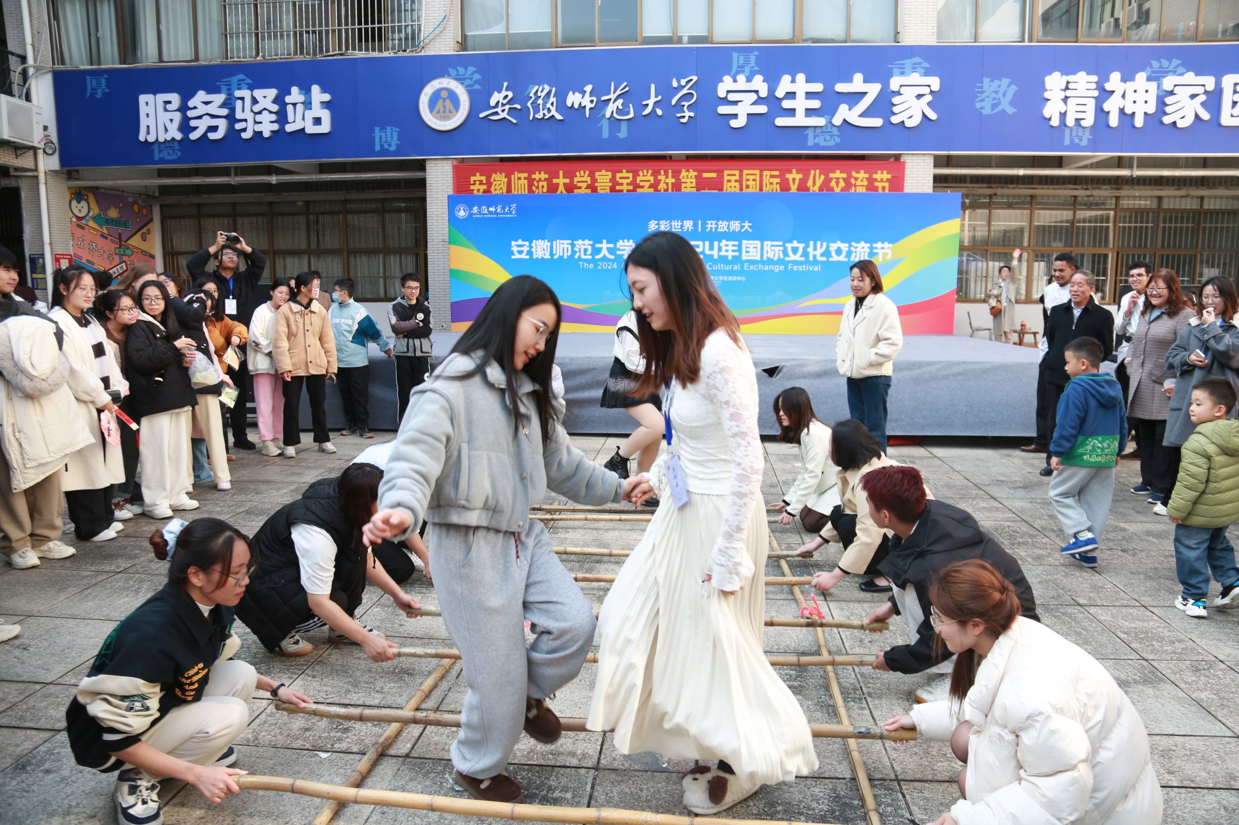 开幕式上,国际教育学院党支部书记杨一飞、副院长杜俊(主持行政工作),历史学院党委副书记宫超,以及两个学院的教师代表等嘉宾出席,共同见证了这一文化盛事的启动。在为期半天的活动中,学校师生体验了世界各地的风土人情,制作异国手工艺品,尽享各国美食。同时,节目表演精彩纷呈,包括戏曲节目《金风玉露》、俄罗斯歌曲《喀秋莎》、越南竹竿舞等,以及哈萨克斯坦的乐器表演和巴勒斯坦的达布卡舞等,展现了各国文化的独特风采。随着俄罗斯布里亚特族的击“瑟日”比赛的圆满结束,2024年国际文化交流节也落下帷幕。各国同学们在欢声笑语中留下了美好的回忆,并一同拍照留念,记录下这一难忘的文化交流时刻。