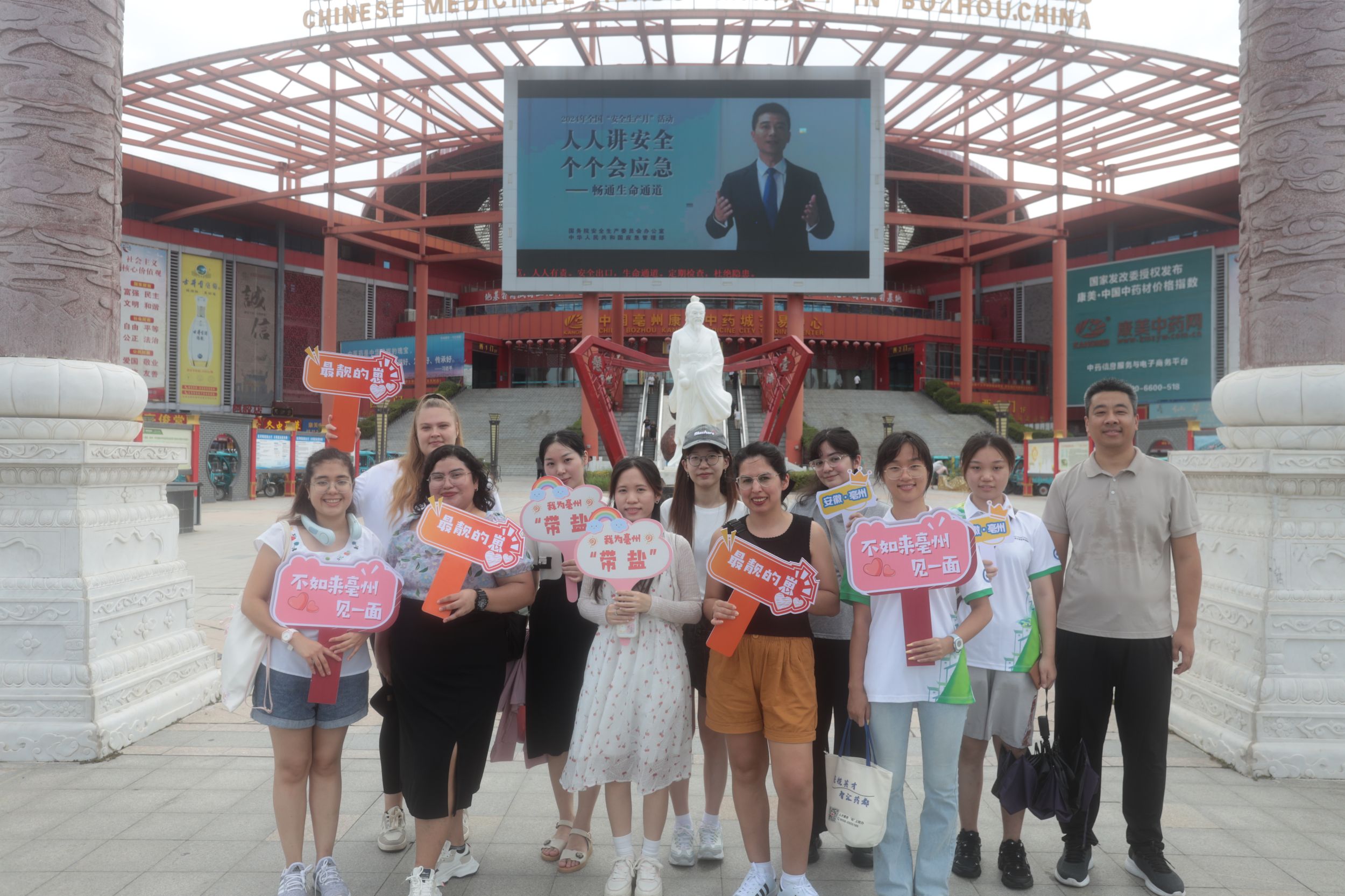在亳州、寿县实践期间,留学生参观了曹操地下运兵道、楚文化博物馆、寿县古城墙、报恩寺,领略古代中国劳动人民的智慧和才能;走访中药材交易中心、古井贡酒集团,智能科技园、感受中国经济的巨大创新活力;学习五禽戏、剪纸、面塑,体验中国传统“非遗文化”的独特魅力,更加直观感受到美丽的徽山徽水徽文化,并与中国学生结对组建社会实践队伍,增进中外文化互鉴,巩固中外青年友谊。