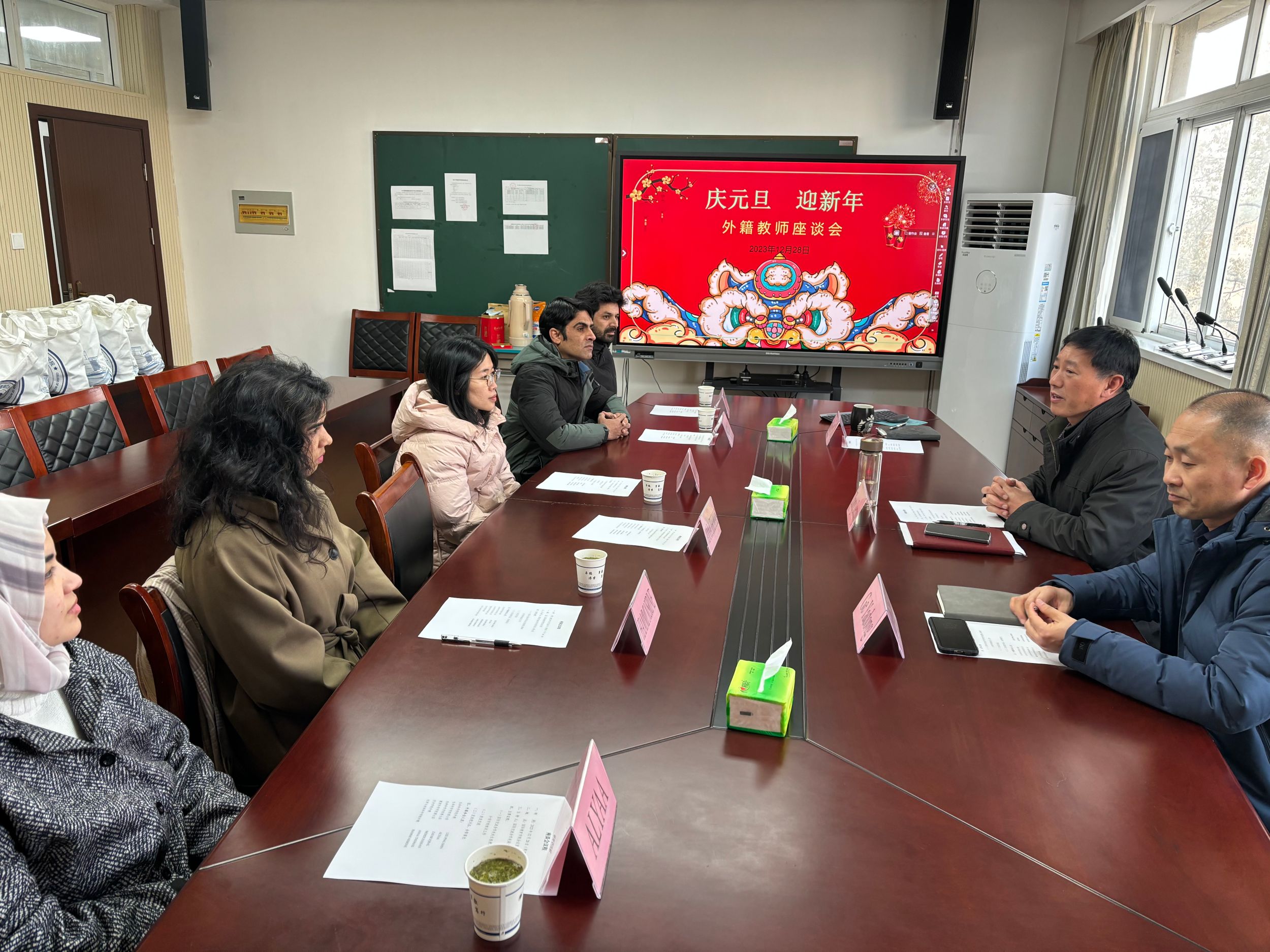 12月28日下午,国际交流合作处代表学校在赭山校区和花津校区召开了两场外籍教师“庆元旦 迎新年”慰问座谈会。