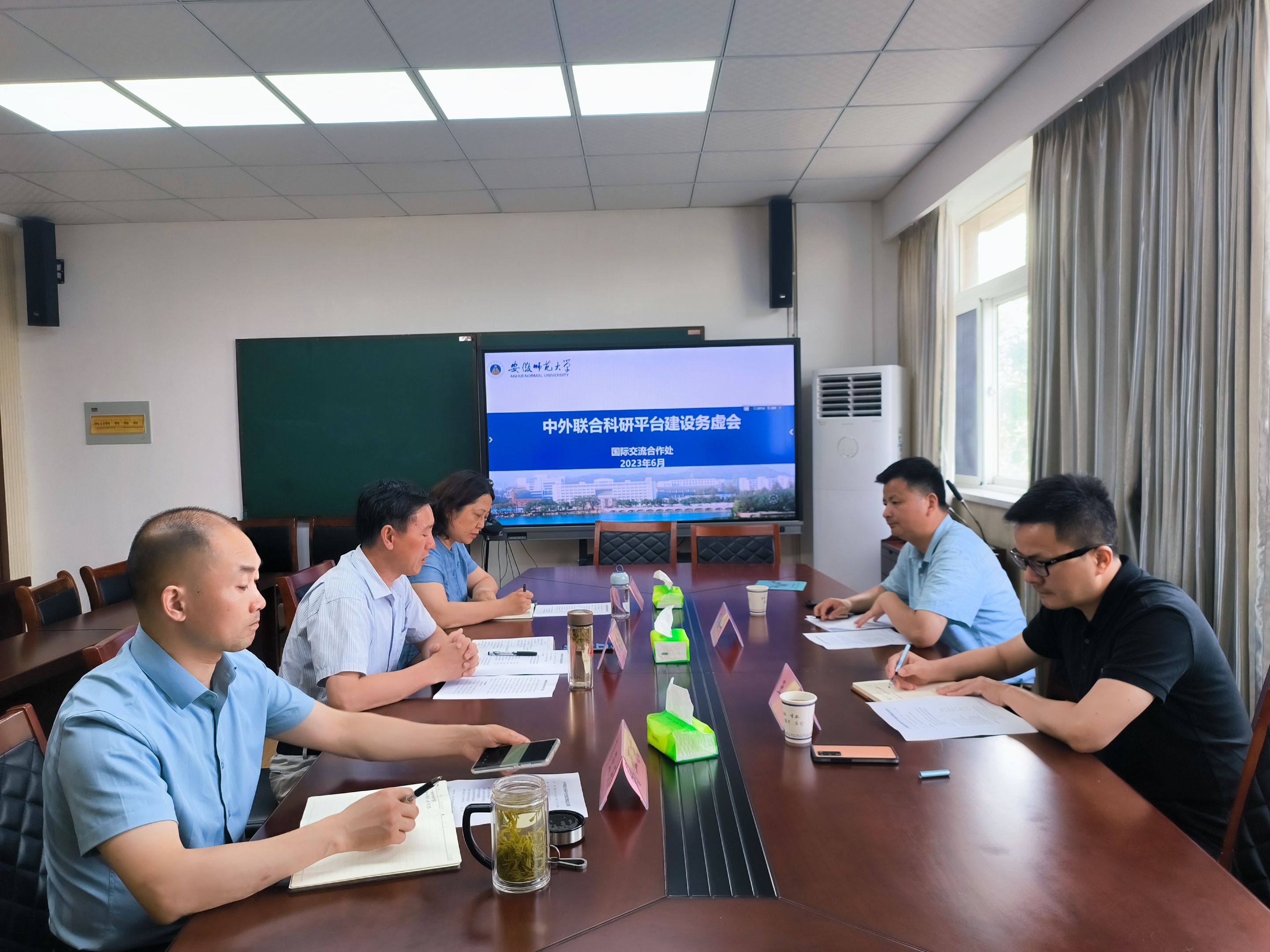 6月20日下午,国际交流合作处召开中外联合科研平台建设务虚会,国际交流合作处副处长杜俊、葛亚东,化学与材料科学学院副院长周双六、生命科学学院副院长王鹏参加座谈交流,会议由国际交流合作处处长张德让主持。