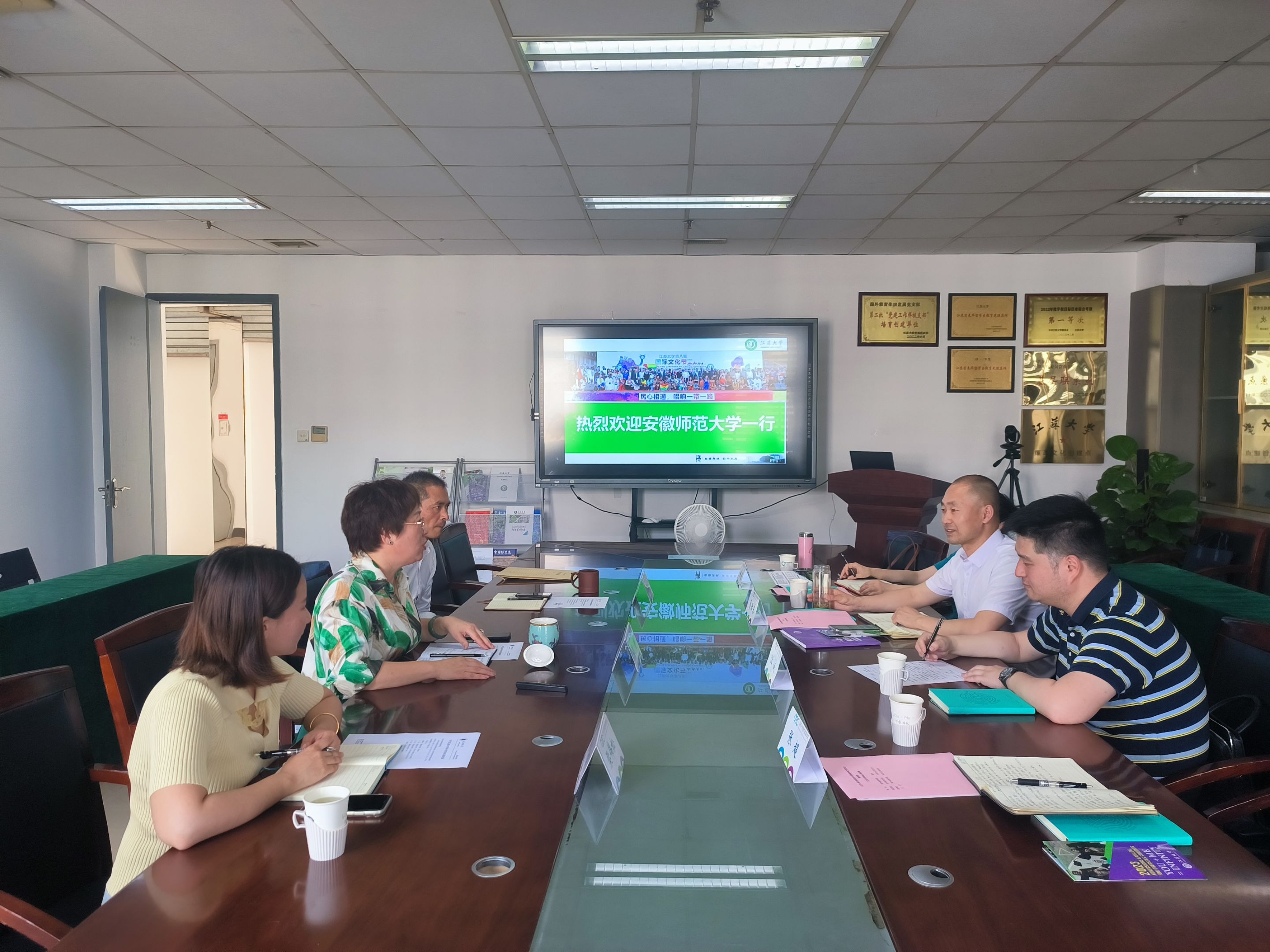 5月16日上午,国际交流合作处副处长、国际教育学院副院长葛亚东带领相关科室人员赴江苏大学海外教育学院,围绕来华留学生教育等方面开展调研工作。江苏大学海外教育学院院长高静、行政办公室主任戴伟国等相关人员出席了座谈交流会。
