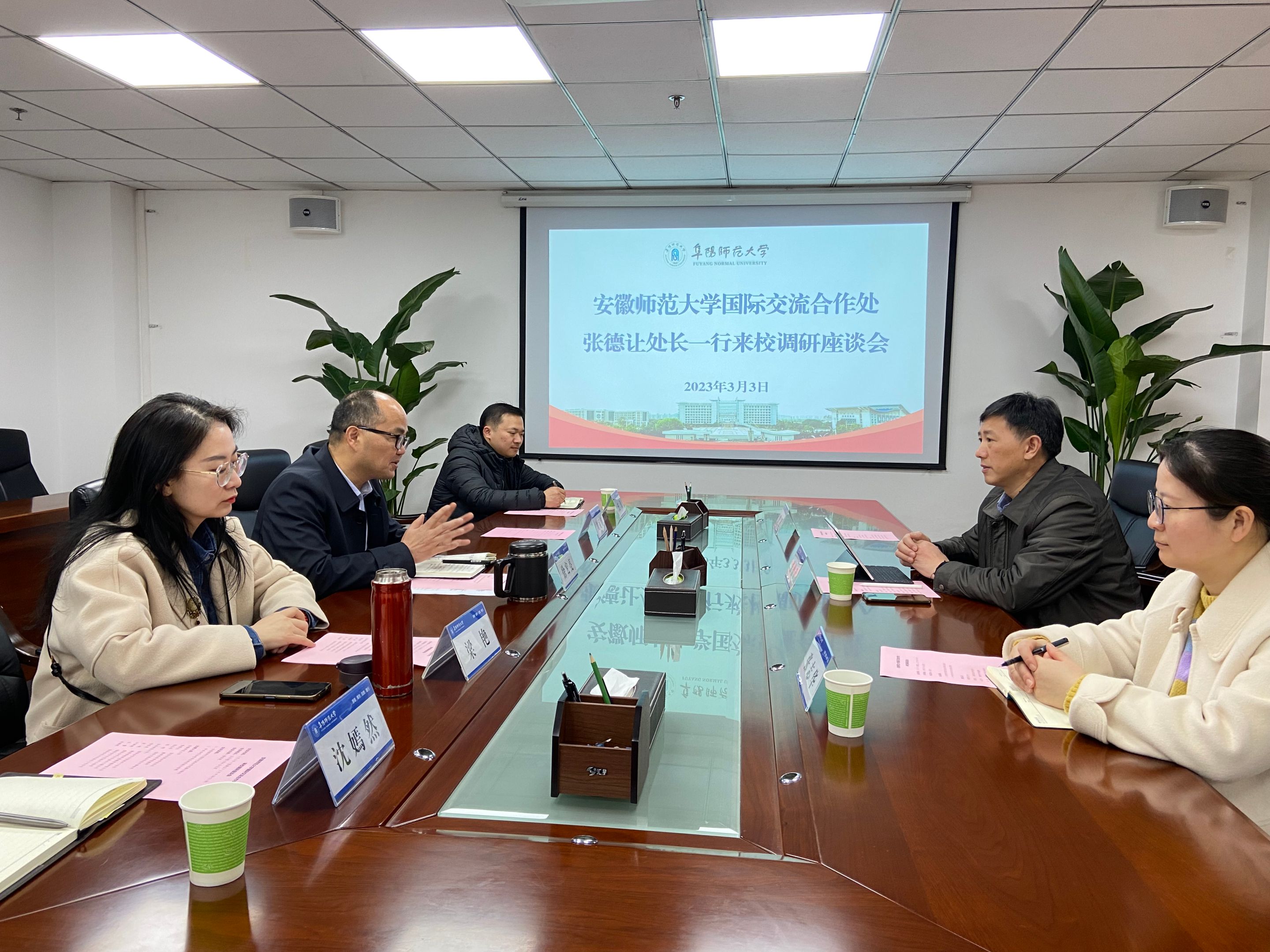 座谈会上,徐宏亮首先对我校到来表示欢迎,详细介绍了阜阳师范大学外事工作的发展历程和现状,分享了因公出访团组管理、外教及留学生管理、中外合作办学项目建设与实施的具体做法,就后疫情时代国际交流合作思路与措施进行了探讨。他表示,安徽师范大学外事工作起步早、成果多,希望双方加强交流合作,分享业务管理经验,推进两校国际交流与中外合作办学项目管理工作。