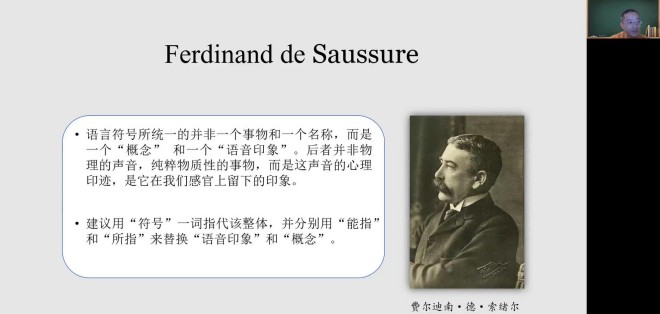 余红兵教授从西比奥克所言符号学“小传统”入手,介绍了现代语言学理论奠基者、“现代语言学之父”索绪尔在符号学方面的主要观点,阐释了索绪尔式符号学的基本原理。与多数学者对索绪尔符号模型理解不同的是,余红兵教授回归《普通语言学教程》中的记录以及索氏《普通语言学手稿》中的阐述,探索并凸显索绪尔符号学思想的原初形态。同时,为帮助与会师生更进一步了解索氏符号学原理,余教授推荐并详细介绍了相关文献和著作,并对大家困惑疑难之处一一耐心解答。余红兵教授的讲解深入浅出,使得与会师生受益匪浅,对索氏思想及其符号学理论有了更清晰的认识。