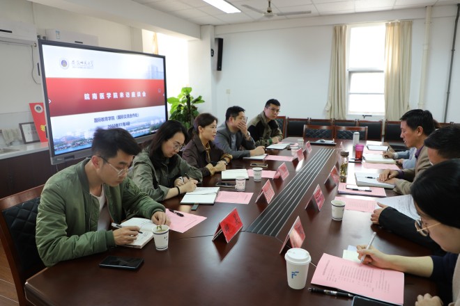 会上,杜俊介绍了我校留学生管理方面的制度建设、亮点活动及日常管理方式方法,分享了疫情常态化下留学生管理的经验,着重强调要加强留学生管理队伍建设。黎洪介绍了我院留学生教学的模式和特点,希望能和皖南医学院进一步加强教学方面的合作。教学办、外事办也结就具体工作开展进行了交流。