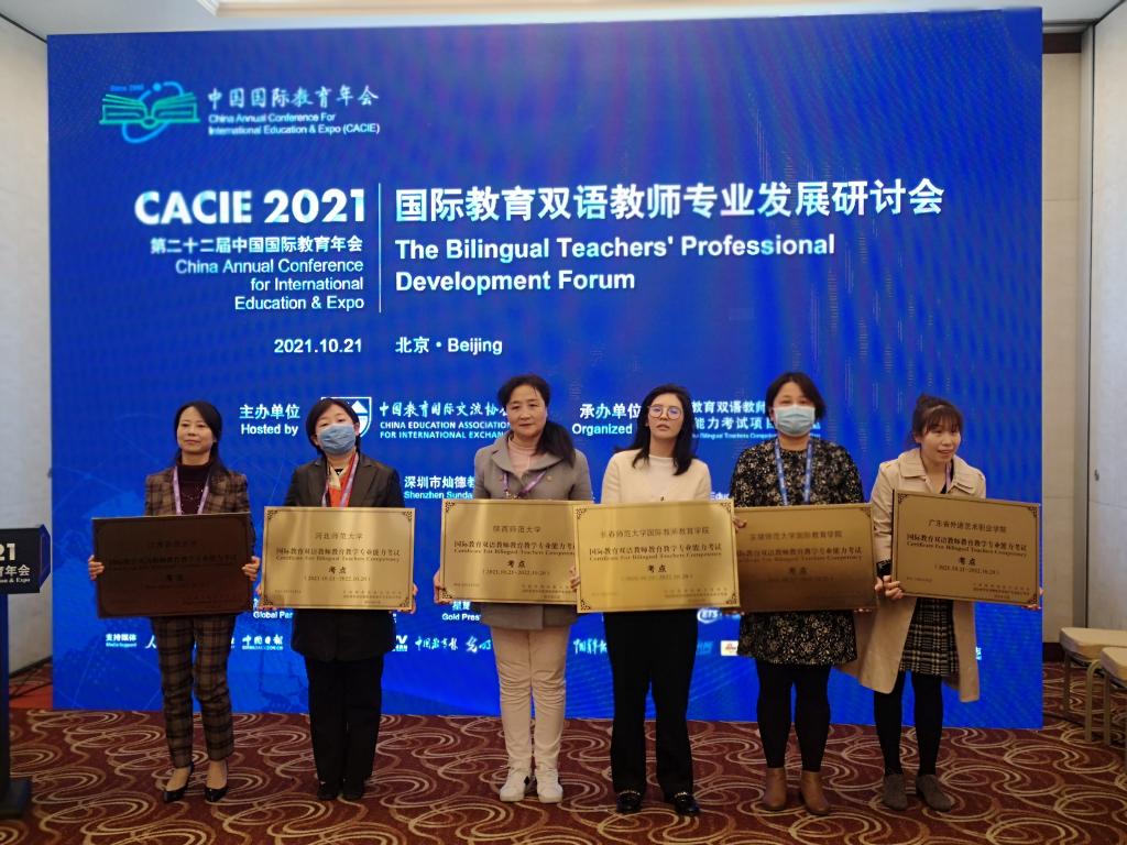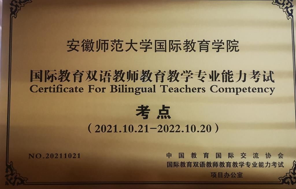 中国国际教育年会是教育部等中央部委大力助推、中国国际教育交流协会主办的国际教育年度盛会。本届年会采取“线上+线下”主题研讨会模式召开,吸引了来自国内外教育界3000多名嘉宾代表参加。“国际教育双语教师研讨会”作为本届国际教育年会的重要组成部分,以“育新机、开新局,加快构建中国特色国际教育双语教师教育体系”为主题,研讨了新时代背景下中国特色双语教师队伍建设的必要性及其专业成长途径。教育部国际司国际教育研究基地主任马万华等学界专家和与会嘉宾交流了当前国际教育双语教师发展现状、国际经验借鉴等。会议还详细解读了《国际教育双语教师教育教学专业能力标准》及《国际教育双语教师教育教学专业能力评价标准》,明确了在教育国际化发展的大背景下,建设具有中国特色的双语教师标准、促进国际教育双语教师专业发展的意义和决心。会上,中国教育国际交流协会负责人授予安徽师范大学等14所高校为全国首批国际教育双语教师教育教学专业能力考试考点。
