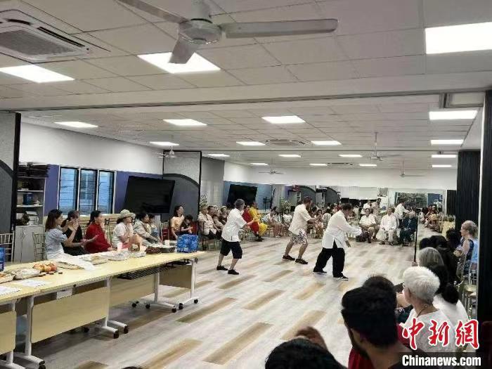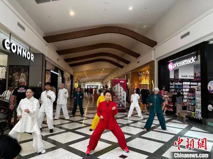 当地的太极爱好者布鲁斯与他的学生们进行了杨氏太极拳和“太极剑”的表演,一位达尔文的华侨也展示了他多年来坚持学习的八十二式太极。观众纷纷加入“八段锦”队伍,亲身体验太极的魅力,场面热闹非凡,吸引了众多游客,他们纷纷拿起手机记录下这一精彩时刻。