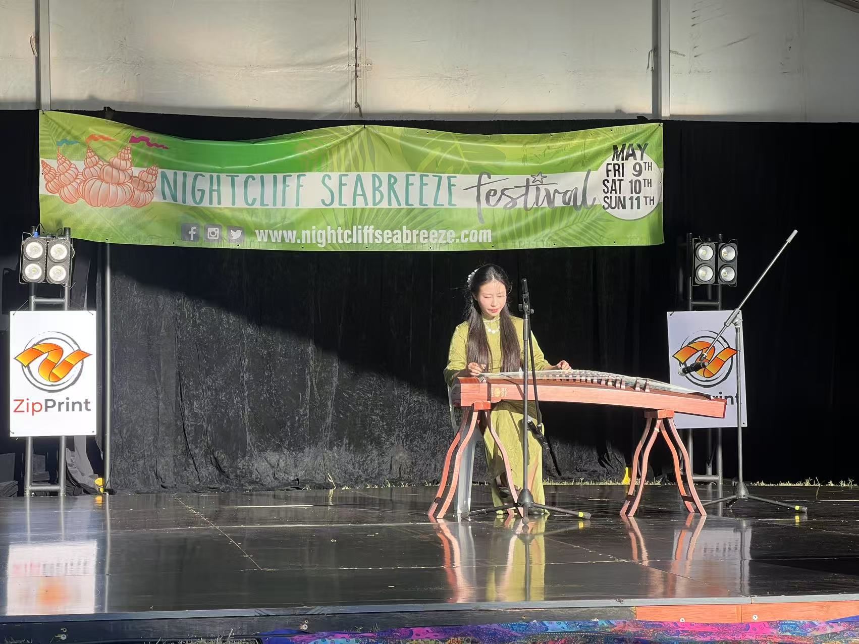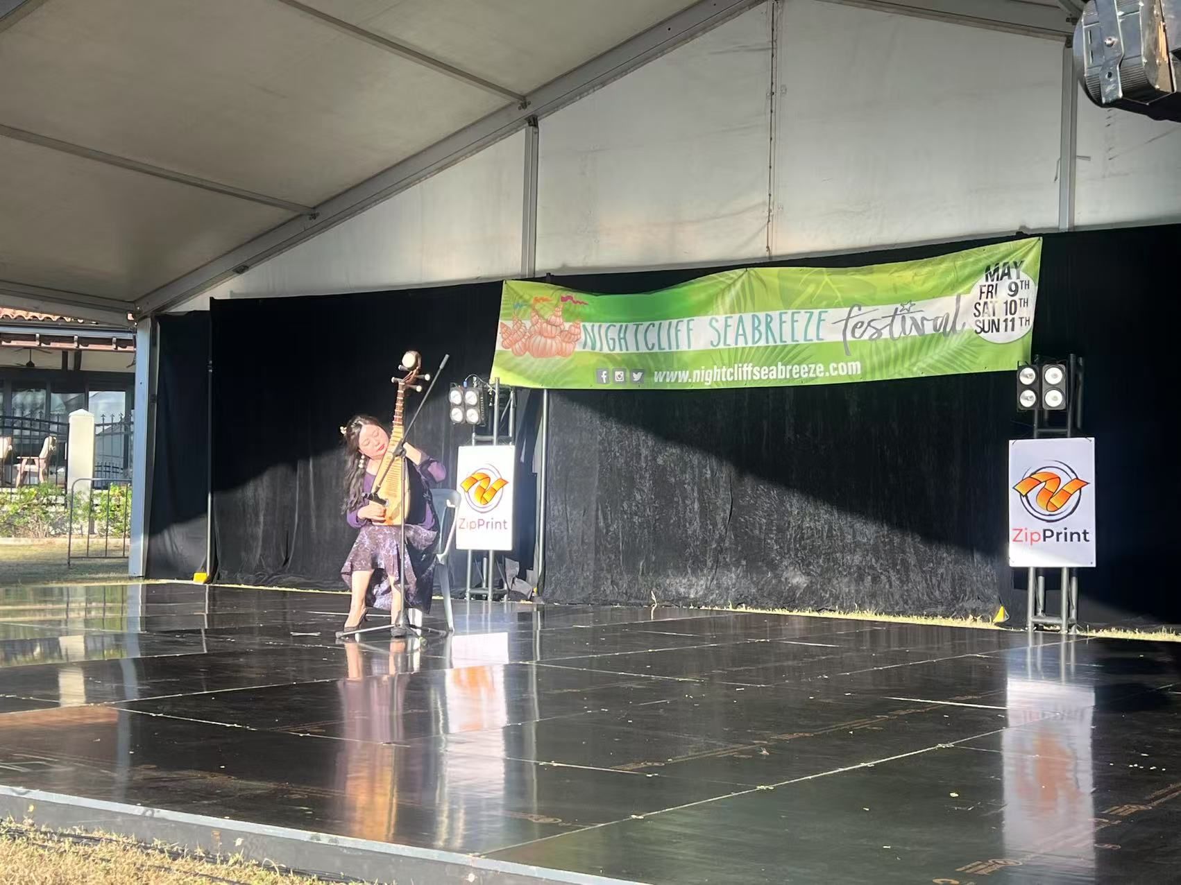 当地时间下午5时,安徽师范大学张迎春副教授的琵琶独奏《送我一只玫瑰花》和孔子学院金泽会老师演奏的古筝独奏《青花瓷》拉开了海风节20周年活动的序幕。清亮的音符伴着海风传向观众席,精彩的演奏赢得了阵阵掌声。