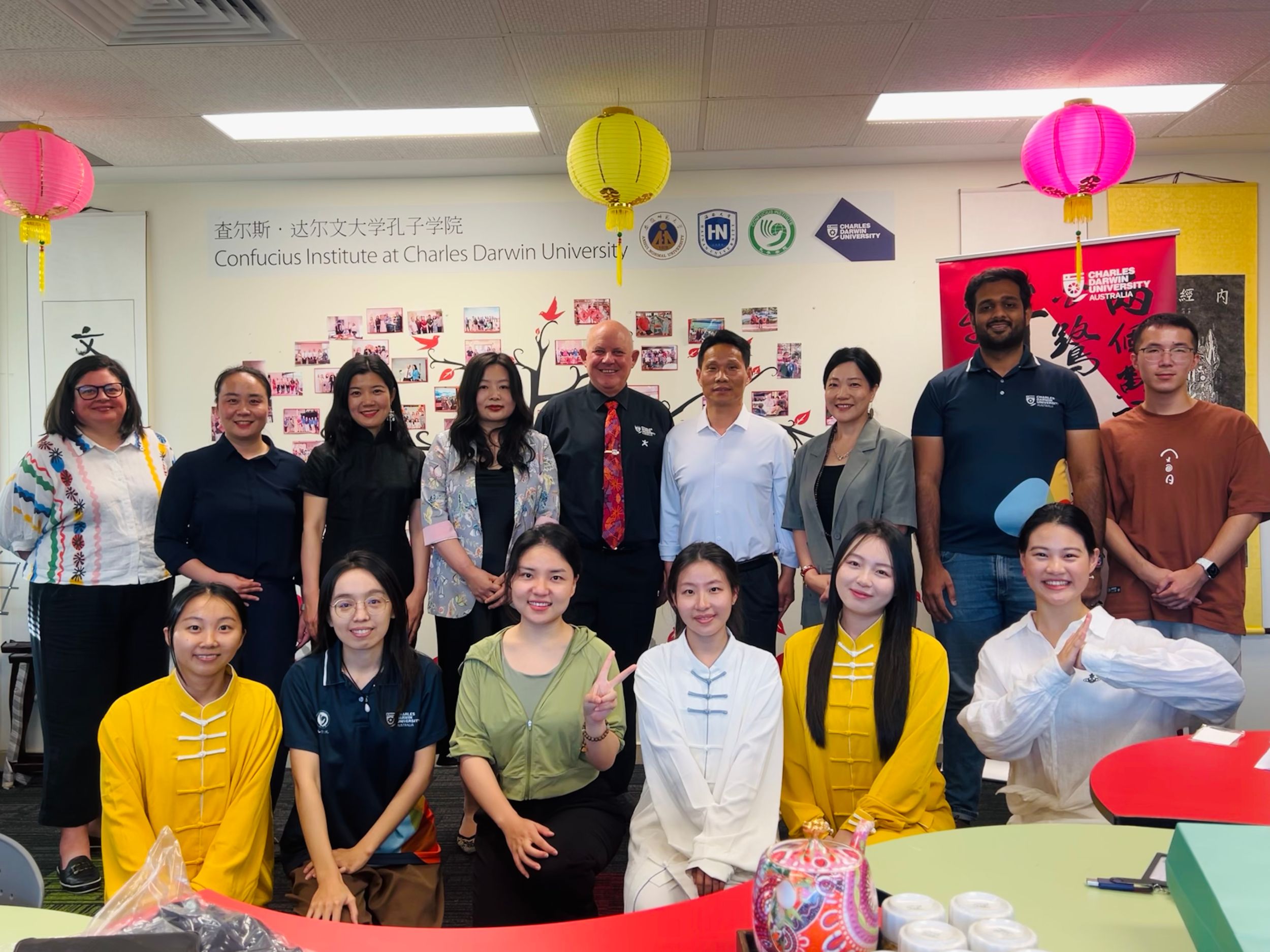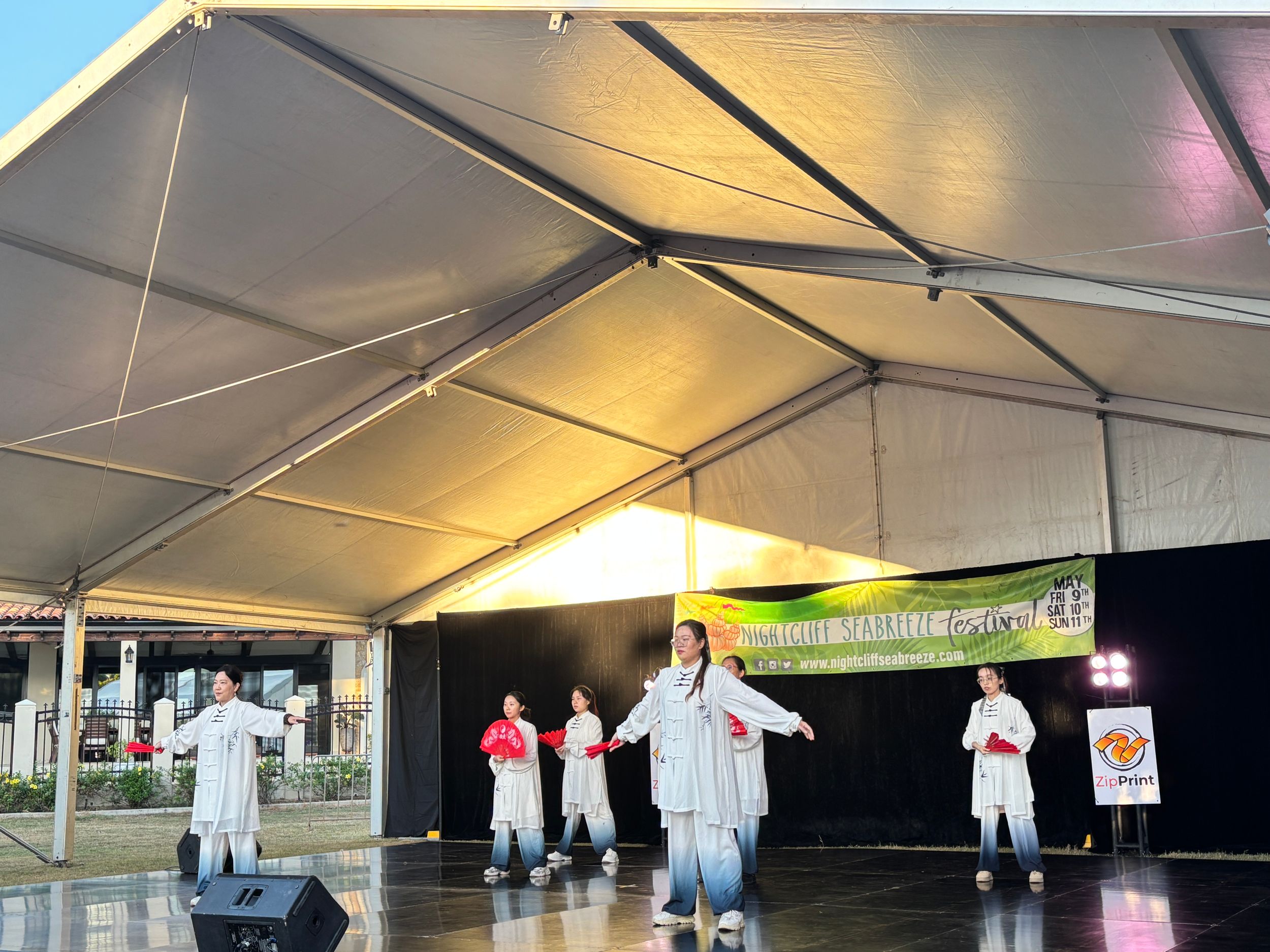 2025年5月9日,正值安徽师范大学代表团访问查尔斯·达尔文大学孔子学院的第四日,恰逢达尔文市夜崖海风节20周年的纪念日。代表团与孔子学院的老师们联合呈现了一场包括音乐、舞蹈以及太极功夫的中国多元传统文化演出,为节日增添了独特的东方韵味。