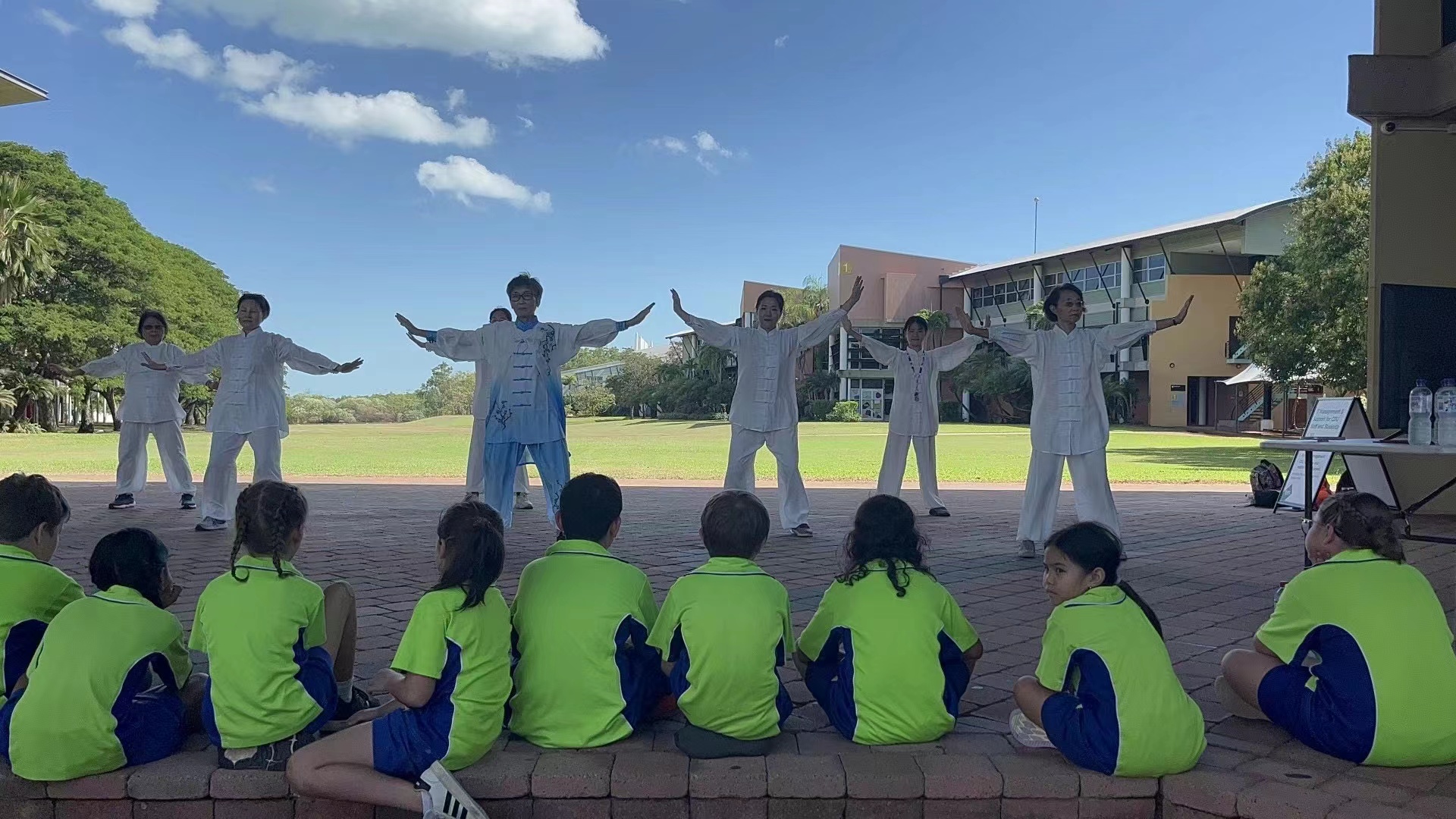 近日,查尔斯·达尔文大学孔子学院在查尔斯·达尔文大学图书馆前举办了八段锦专题文化交流活动,来自瓦加曼小学的十五位学生亲身体验了这门传统的“中国功夫”。