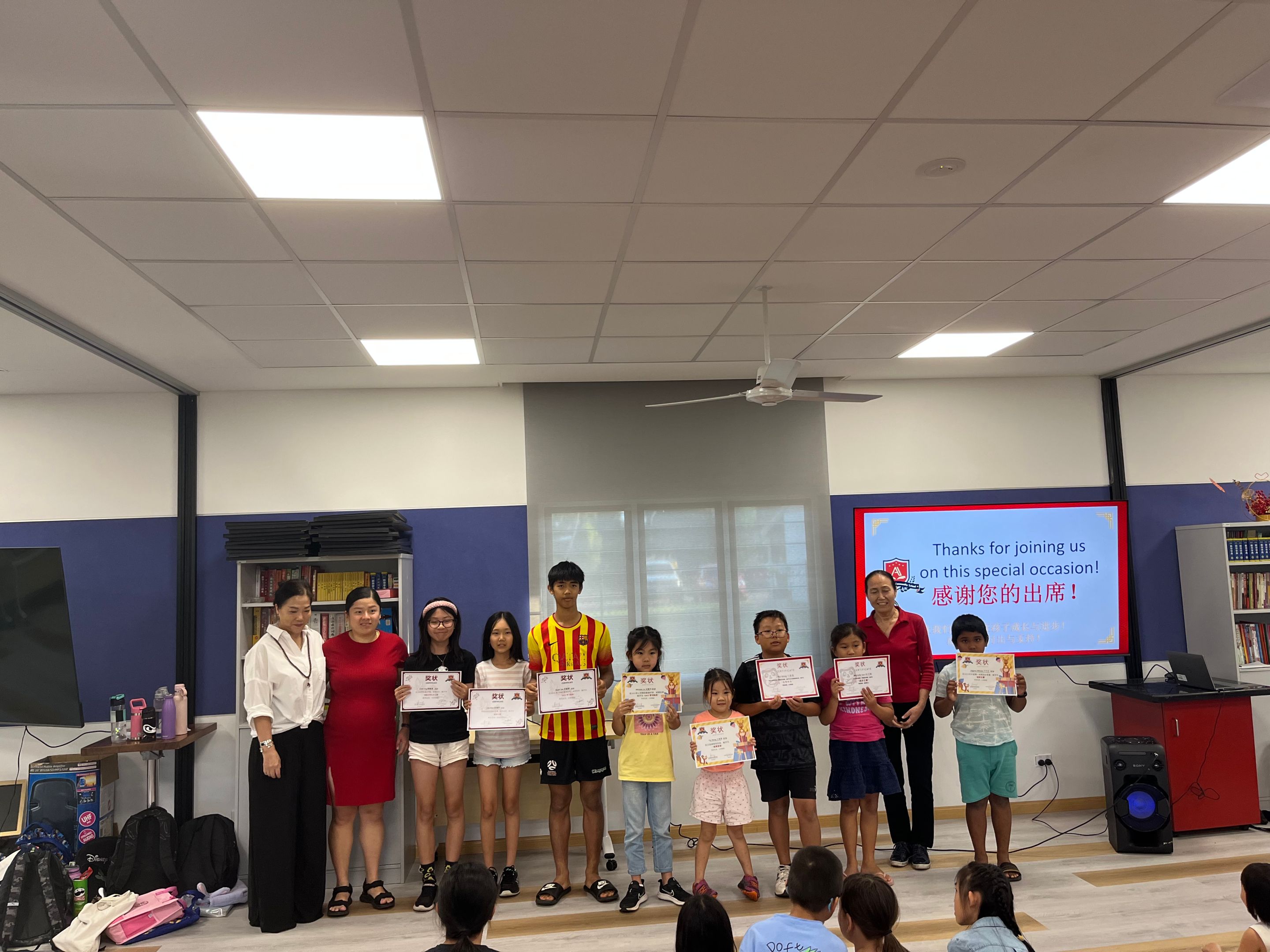 于爱红院长代表孔院授予“袋鼠班”部分学生“最佳进步奖”和“学习标兵”,并对澳亚社区学校对汉语和中国文化的重视表达了衷心的感谢。在与校长邱美凰的会谈中,于爱红院长表示,孔院会继续为学校提供支持,共同为社区文化多样性努力。