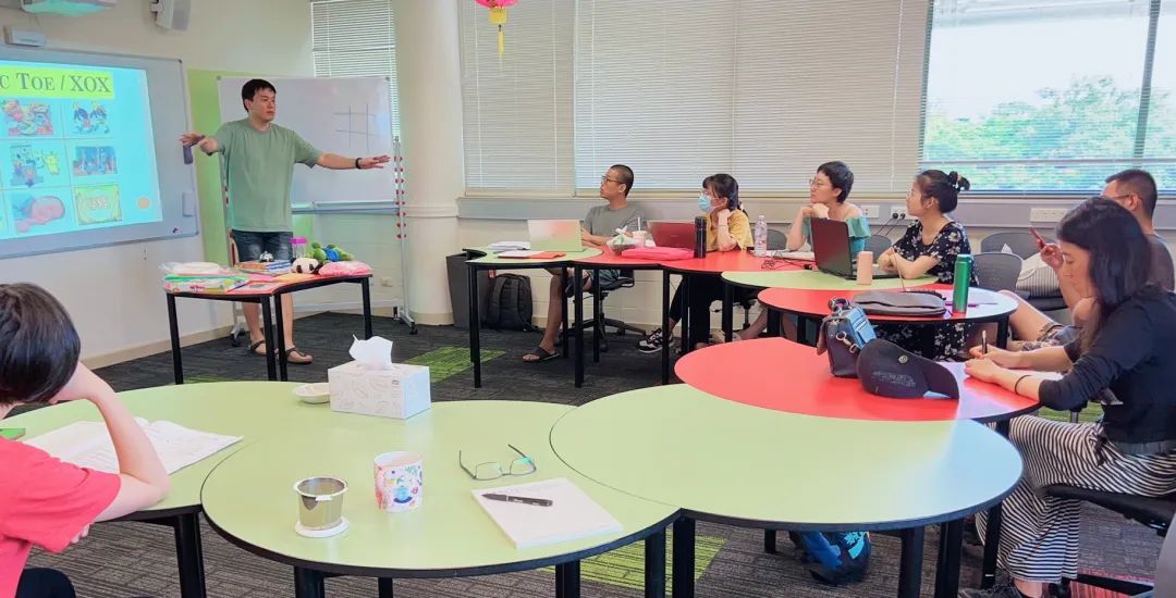 随后,Tan向老师们分享了自己以往的课堂活动设计方案。比如,他将几十种广受欢迎且操作性强的课堂活动方案分为“课堂管理”、“学生管控”、“语音强化”、“汉字认读”、“句型操练”、“主题任务”、“复习检测”等板块,针对每个版块设计不同目的的活动;他还介绍了一些颇受孩子们欢迎的经典游戏,如“人体时钟”、“萝卜蹲”、“神奇颜色”、“你跑我写”、“连连看”等,让孩子们在游戏中学习汉语知识。Tan灵活自如地选用合适的课堂活动,将“全身反应法”、“情景法”、“直接法”、“视听法”等教学法理论融会贯通,给老师们带来了很大的启发。