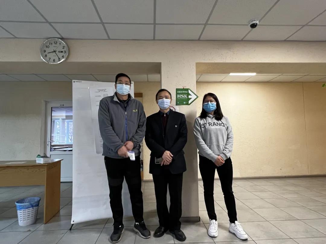 为了组织好此次考试,课堂在前期进行了一系列宣传和报名工作。考试当天,课堂中外方院长、全体老师提前到岗,贴指示牌、测考生体温、布置考场,调试音响设备,按照疫情防控的要求,一切工作有条不紊地进行。在中乌双方院长的组织和全体老师的共同努力下,此次HSK考试工作顺利圆满完成。