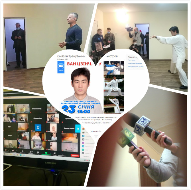 1月23日,我孔子课堂与扎波罗热州武术协会合作,利用ZOOM平台在扎波罗热州青少年中国武术爱好者中开展了一次中国健身气功推广活动。下午两点,在课堂的两位院长陪同下,武术教师王井洲老师身着中国传统太极服装,来到武协办公地点的演播室,进行了八段锦教学演义。完整八段锦虽然只有短短6分钟,但为了推广此项健身运动,王老师花了30多分钟才将整套动作讲解、演示完毕。活动结束后,王老师还应邀接受了当地两家电视台采访,就健身气功的基本信息,在中国开展的情况等进行了介绍,回答了两家新闻记者关于养身气功的起源、特点以及功能作用等问题,同时表达了自己愿为扎波罗热开展群众性健身运动提供帮助,为中乌武术文化交流作出自己的努力。