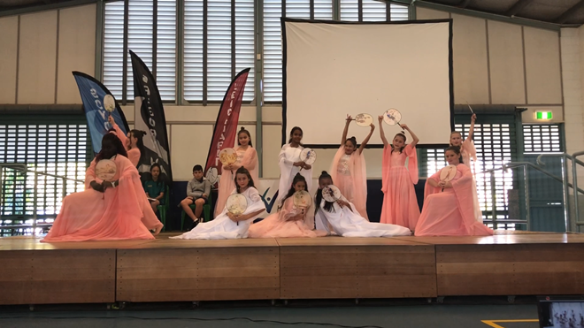 晨会首先由学前班同学表演澳大利亚舞蹈,此后十一位六年级的学生表演了中国古典舞蹈《雨中花》。十一位同学为此次表演进行了为期两个学期的刻苦学习和排练,她们的精彩演出赢得了现场热烈的掌声。此次古典舞向大家展示了中华传统舞蹈道具团扇、中国古典舞蹈服和发饰,现场观众通过此次观看了解了中国古典舞的基本身韵和身法。表演结束后,校长在校长发言中对此次中国舞蹈演出给予了极高的评价,并对排舞教师宋梦璇老师和参与演出的同学们表示衷心感谢。通过此次古典舞授课和演出,学生和家长对中华传统舞蹈产生了浓厚的兴趣,纷纷要求为他们创造继续学习与练习中华传统舞蹈的机会。