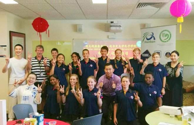 当地时间2018年5月29日,达尔文初级中学学生在罗伯特·韦格纳(Robert Wegner)先生和该中学汉语教学负责人陆阳老师的带领下,来到查尔斯·达尔文大学孔子学院体验中华文化。韦格纳一行受到了孔子学院外方院长马丁·贾维斯(Martin Jarvis)教授和中方院长王华副教授的热烈欢迎。孔子学院专任汉语教师和汉语教学志愿者为前来体验中华文化的同学呈现了一场精彩的文化盛宴。