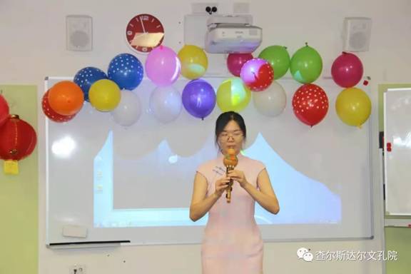 主持人周梦和张小娟中秋祝福的开场将大家迅速带入了中秋联欢晚会的浓郁氛围之中,晚会第一项是孔院院长致欢迎词,诚挚欢迎各位新老朋友的参加,为中秋晚会的举办、为彼此真挚的友谊、为汉语学习的交流、为万家团圆的浓情!第二项是孔院好朋友Terry的发言,“中国通”的他用着流利的中文为我们的活动拉开序幕。