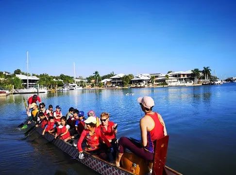 水是流动的故乡,水流到哪里,乡愁就流到哪里。六月二十七日,星期六的清晨,在达尔文市库仑湾(Cullen Bay),晨曦染红了海湾,一圈圈碧波泛起红晕,一声声鸟鸣清脆婉转。扣人心弦的时刻就要到来——由查尔斯.达尔文大学孔子学院和北澳华人协会合办的龙舟赛即将拉开序幕。八点十五分,龙舟入水,人们轻点船桨,离开堤岸,奋力挥桨,仿佛驶向遥远的故土……大人们刚划完,余波犹在荡漾,孩子们也已经登船起航了。他们小手挥动,击鼓,划桨,拨浪,奋进。大海航行小舵手,乘风破浪有力量。这是今年端午节活动的重头戏,积淀了几千年的传统文化,就这样一代代地传承下去。